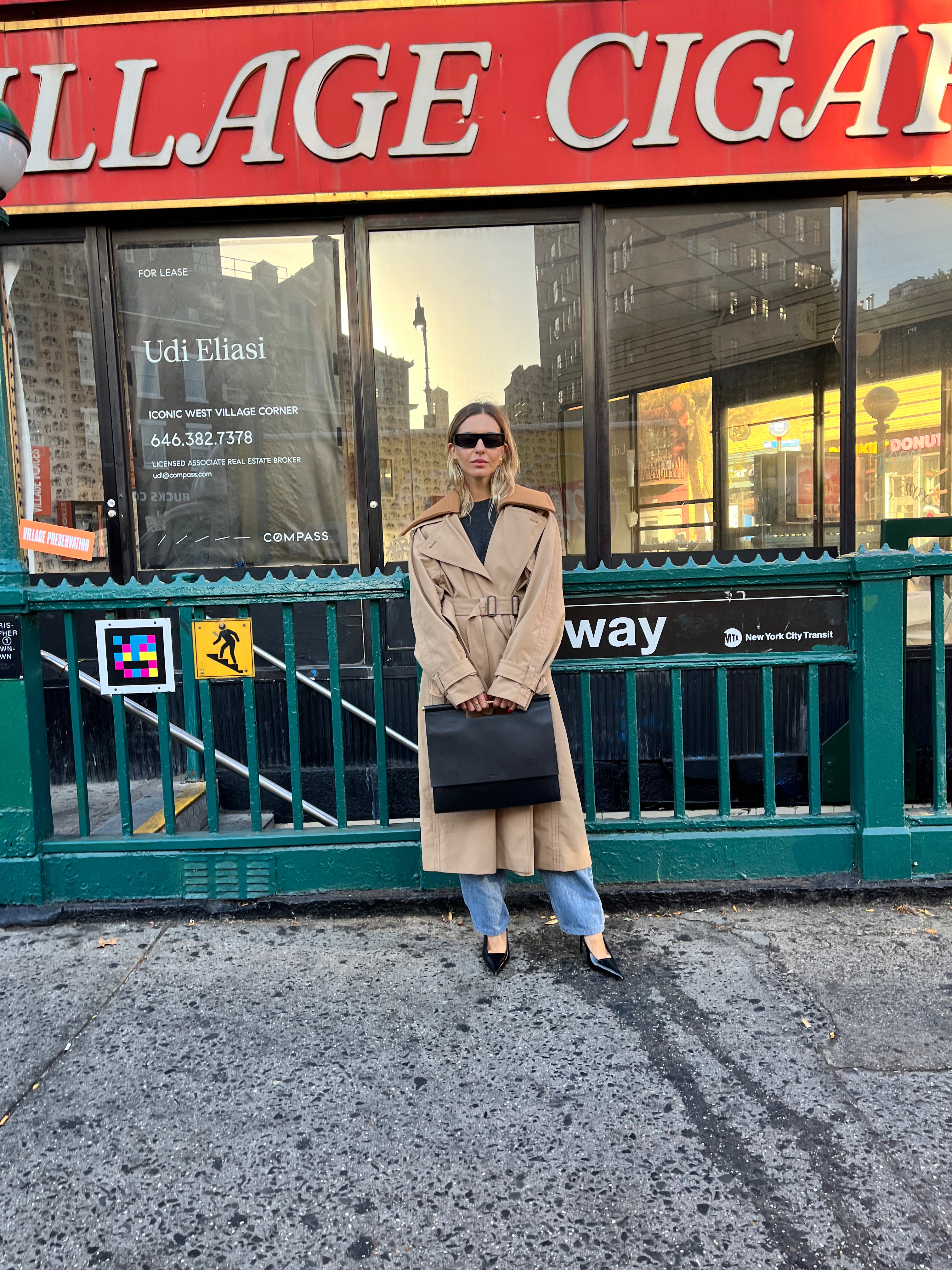 She pairs the Ada Business Bag for meetings with the Jones Pouch for meet-ups, both making the perfect accessory when taking the metro.