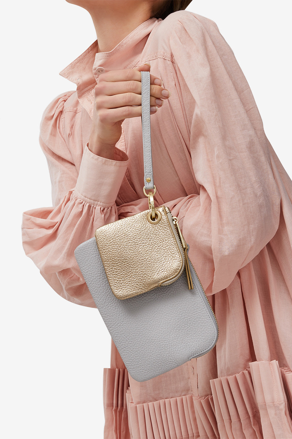 This beautiful piece will level up how you carry your everyday essentials and doubles as a vibrant clutch for night out. The twin pouches can be used as a pair or separately, with a removable wrist strap and internal card pocket offers extra versatility. Crafted from sustainably sourced Italian pebble leather.