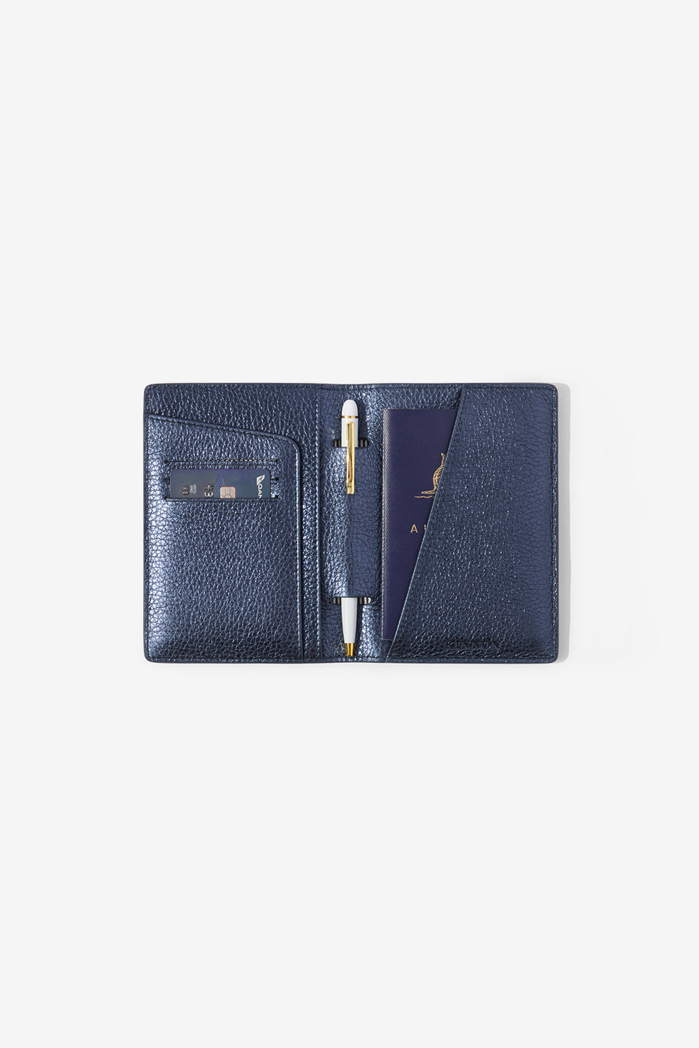 - Earle includes passport pocket, three card slots and pen holder