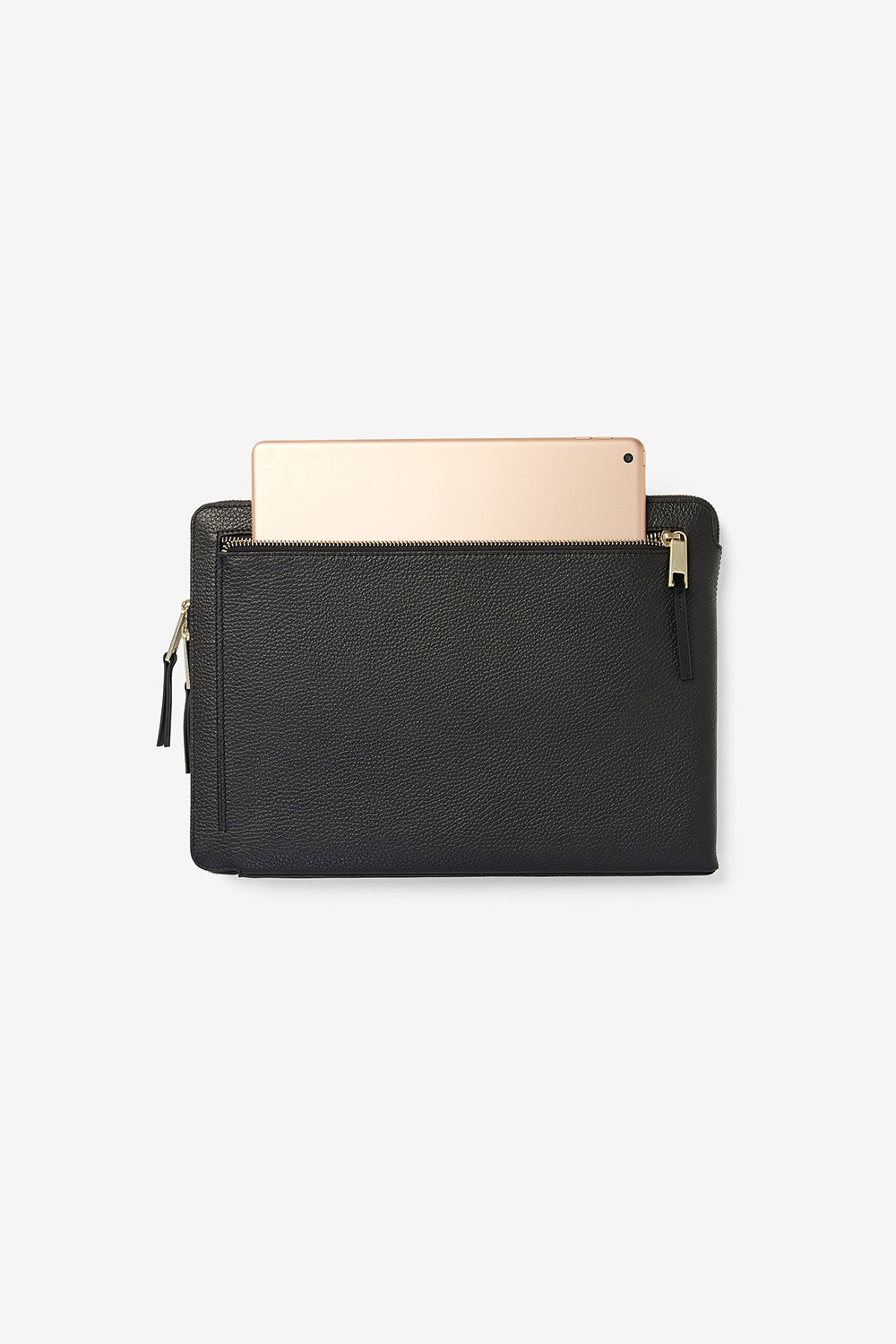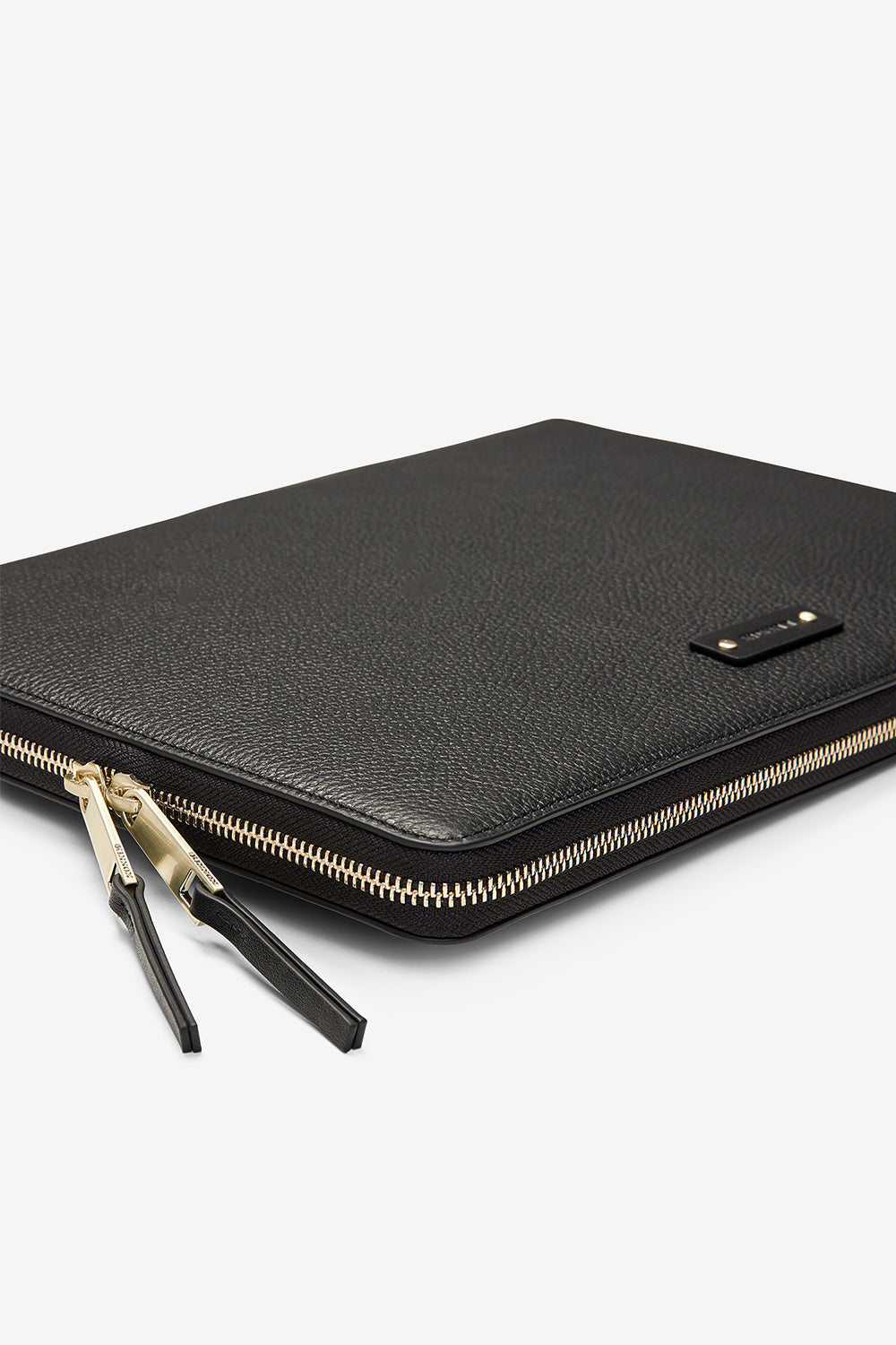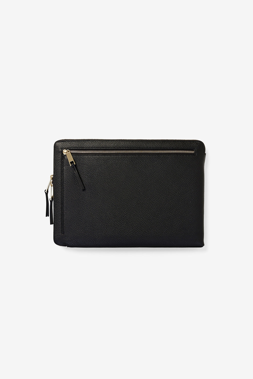 With two-way zippered for easy access, this clever piece fits a 14" laptop and includes a separate rear zippered pocket for notes, phones, and cards for meetings on the go. Crafted from sustainably sourced and certified Italian pebble leather, the Stark offers premium security for all your precious tech.