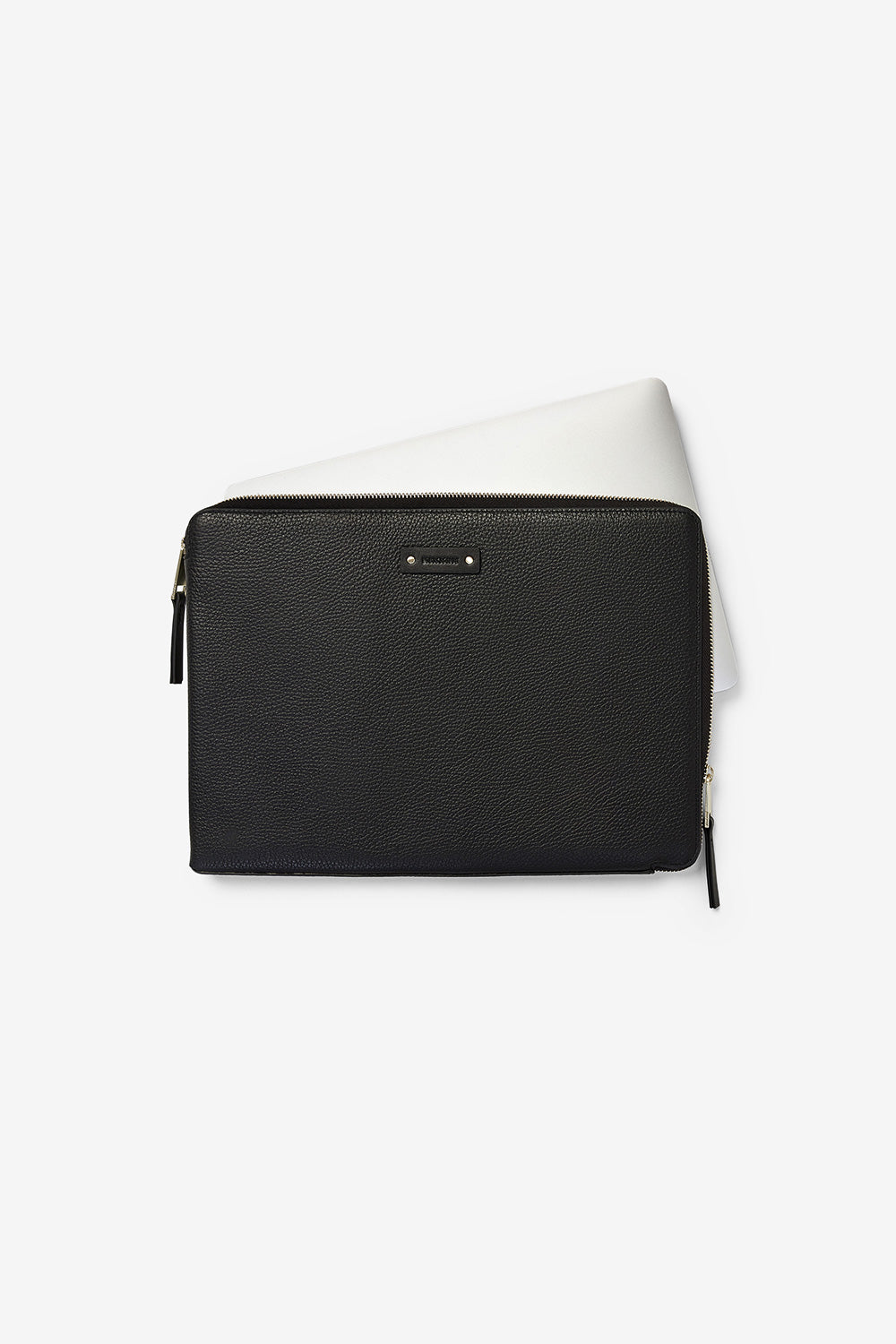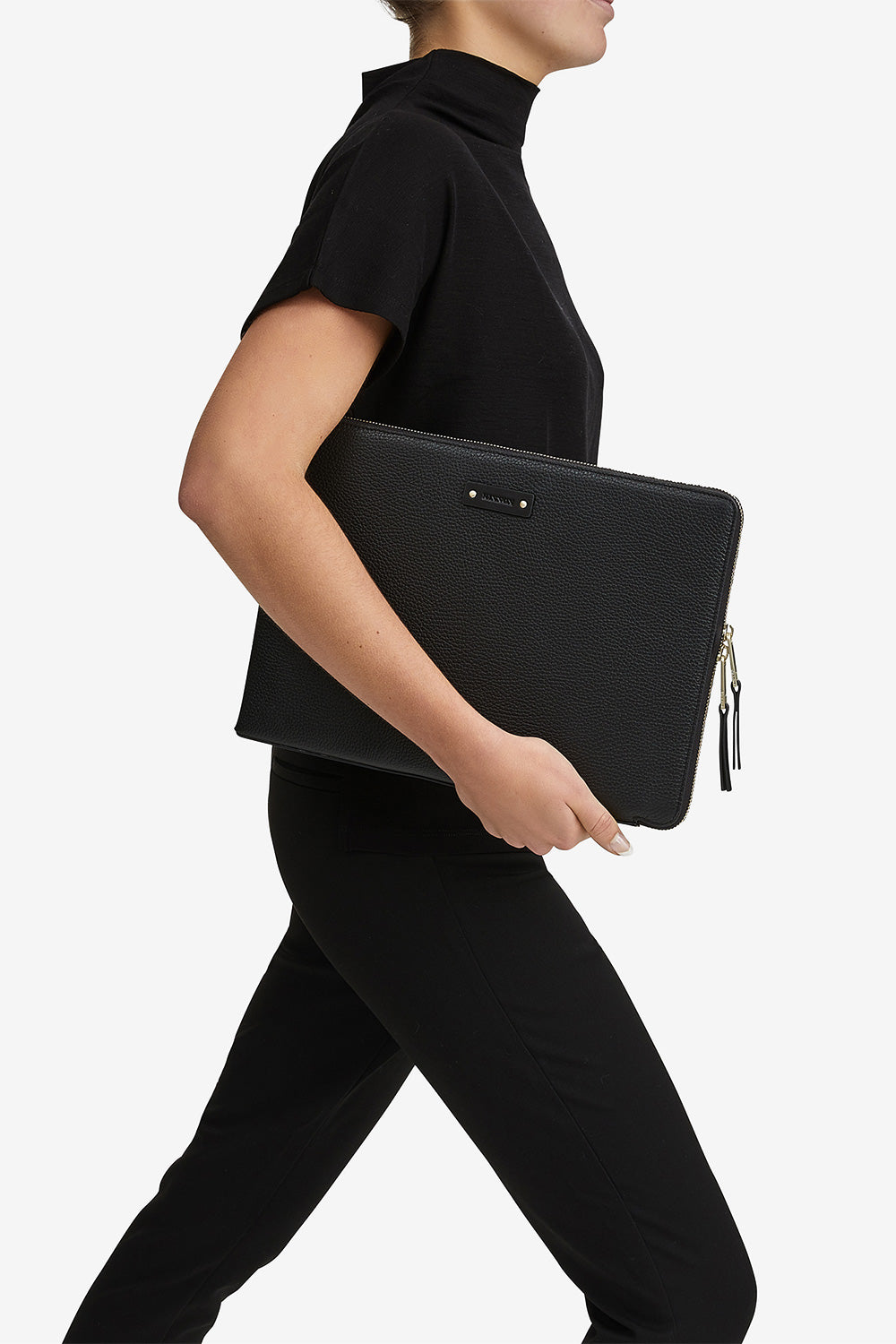 STARK LAPTOP SLEEVE - BLACK WITH LIGHT BRUSHED GOLD HARDWARE