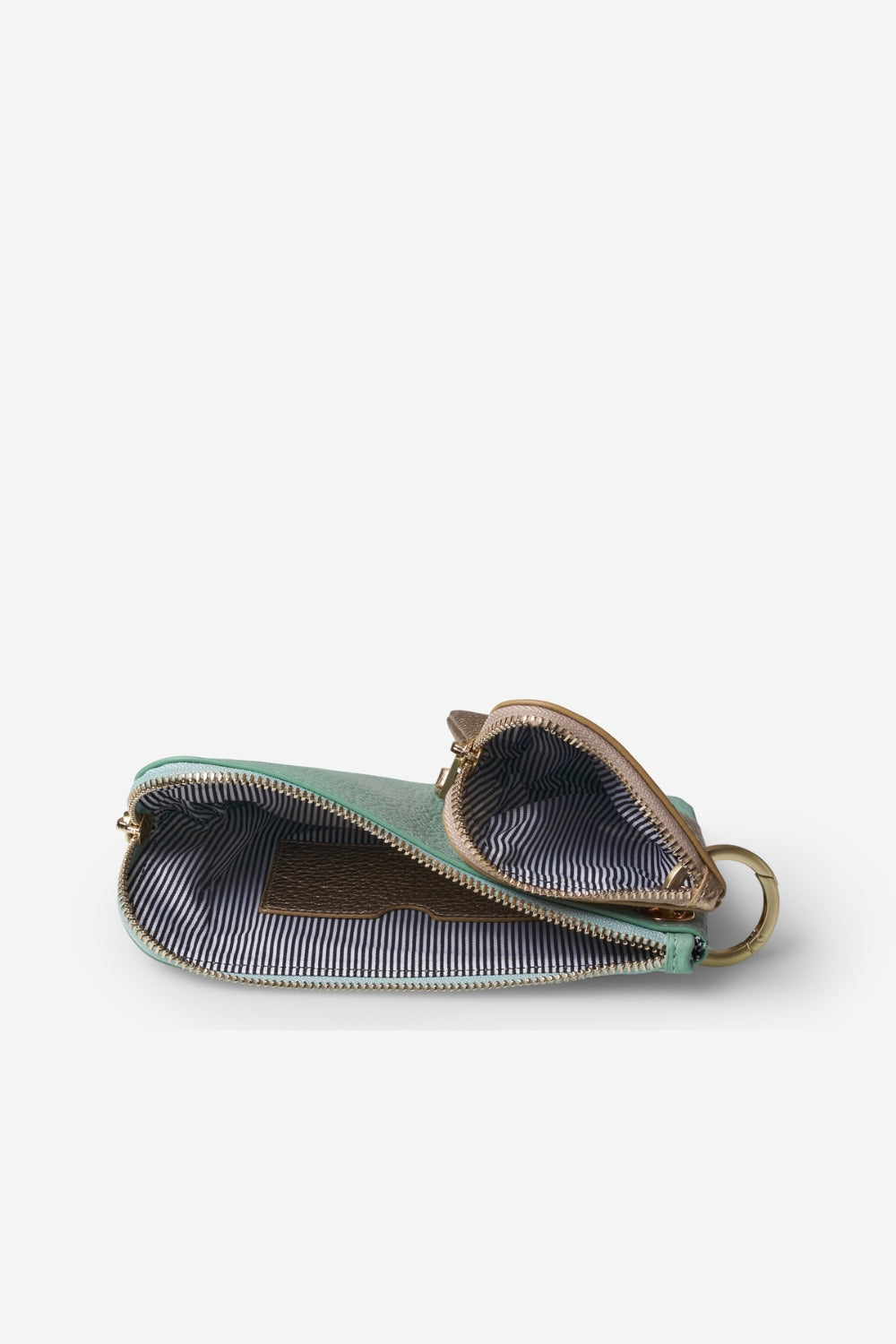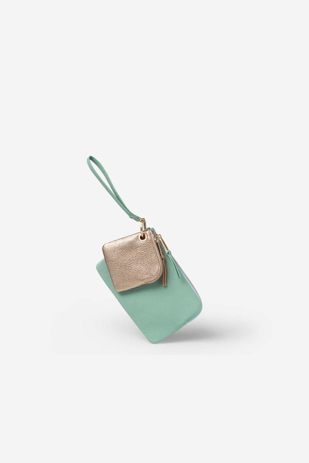 This beautiful piece will level up how you carry your everyday essentials and doubles as a vibrant clutch for night out. The twin pouches can be used as a pair or separately, with a removable wrist strap and internal card pocket offers extra versatility. Crafted from sustainably sourced Italian pebble leather.