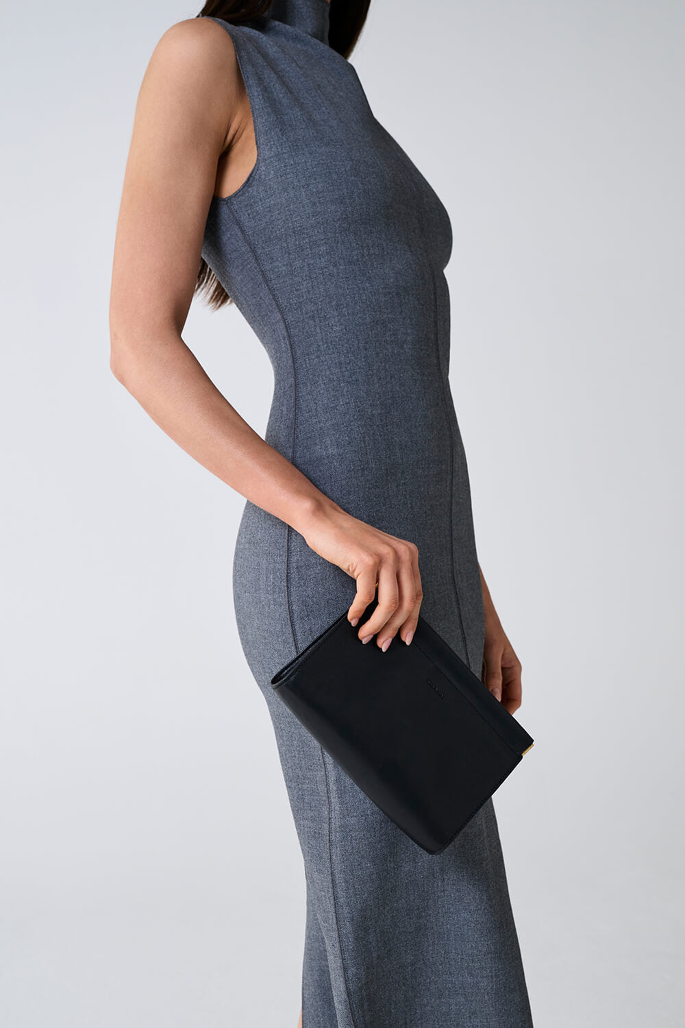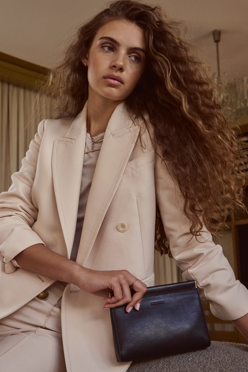 Kinnon's chic and multifunctional Jones pouch is made from sustainably sourced Italian nappa leather, with light brushed gold hinge hardware detailing and magnetic closure. It is the perfect pairing for your phone, keys and lipstick for off-the-clock escapades and doubles as a piece for chargers and tech accessories for the working week.