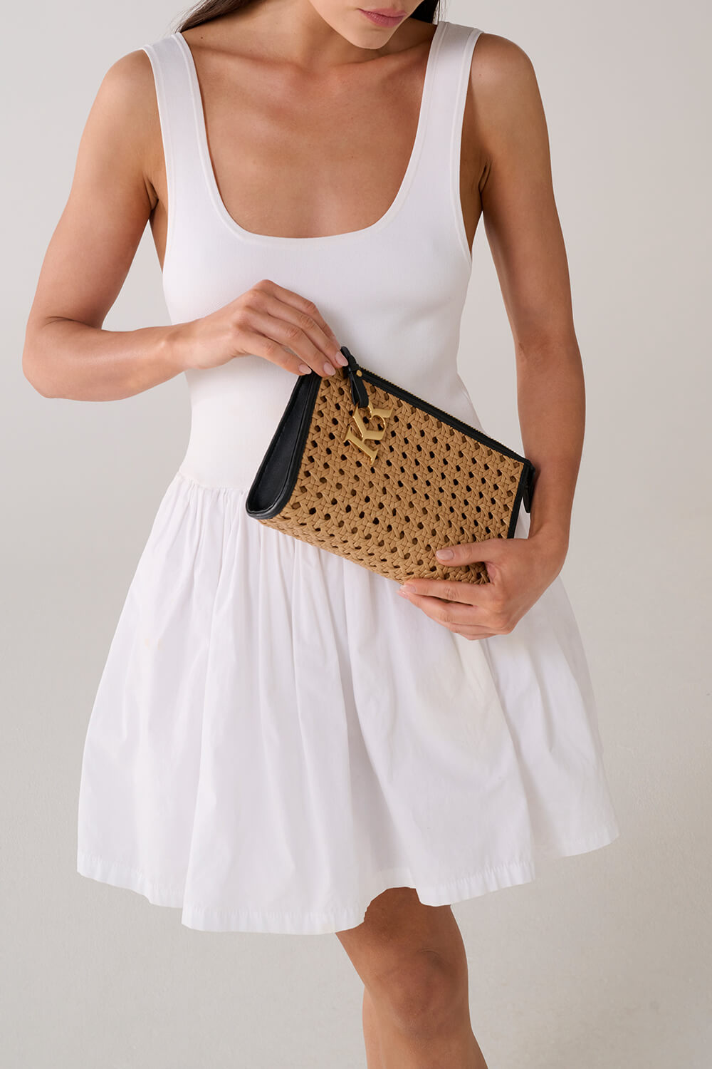 Whether you're heading into the city or out of town, the KR Pochette will lend any look an effortless elevation. Comfortably carrying your phone, touch-ups, sunglasses and keys, making it the perfect day-to-night bag for any occasion. Your KR holiday awaits.