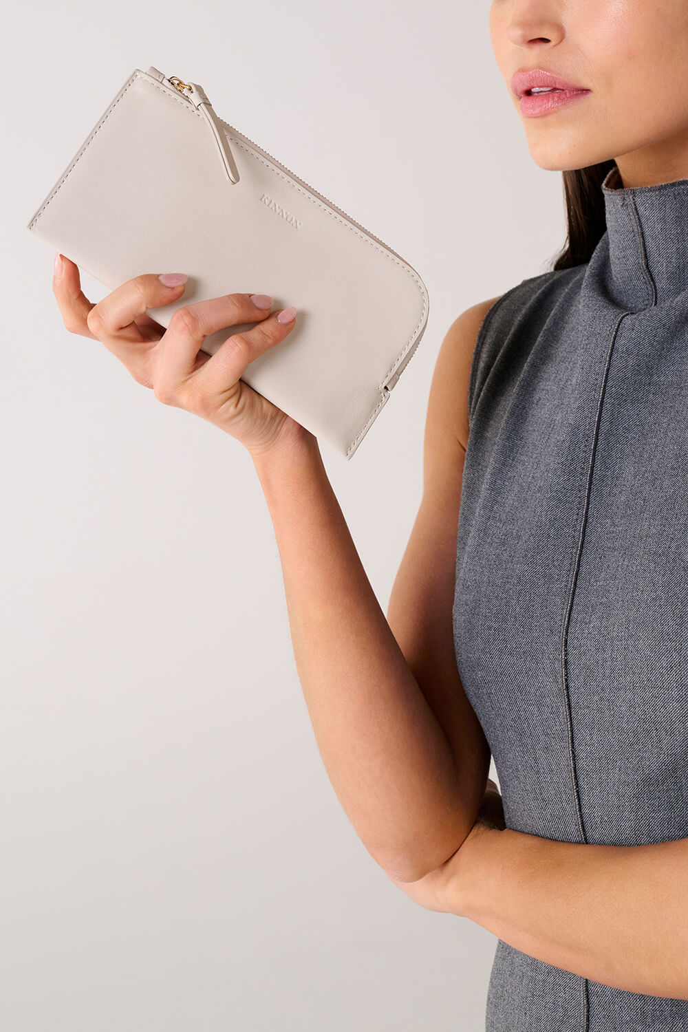 For those who grab and go. Practical and petite, this lightweight purse fits an iPhone 16 Max with ease and offers two card slots for the essentials, as well as a sleek curved zip that won't stop in its tracks.