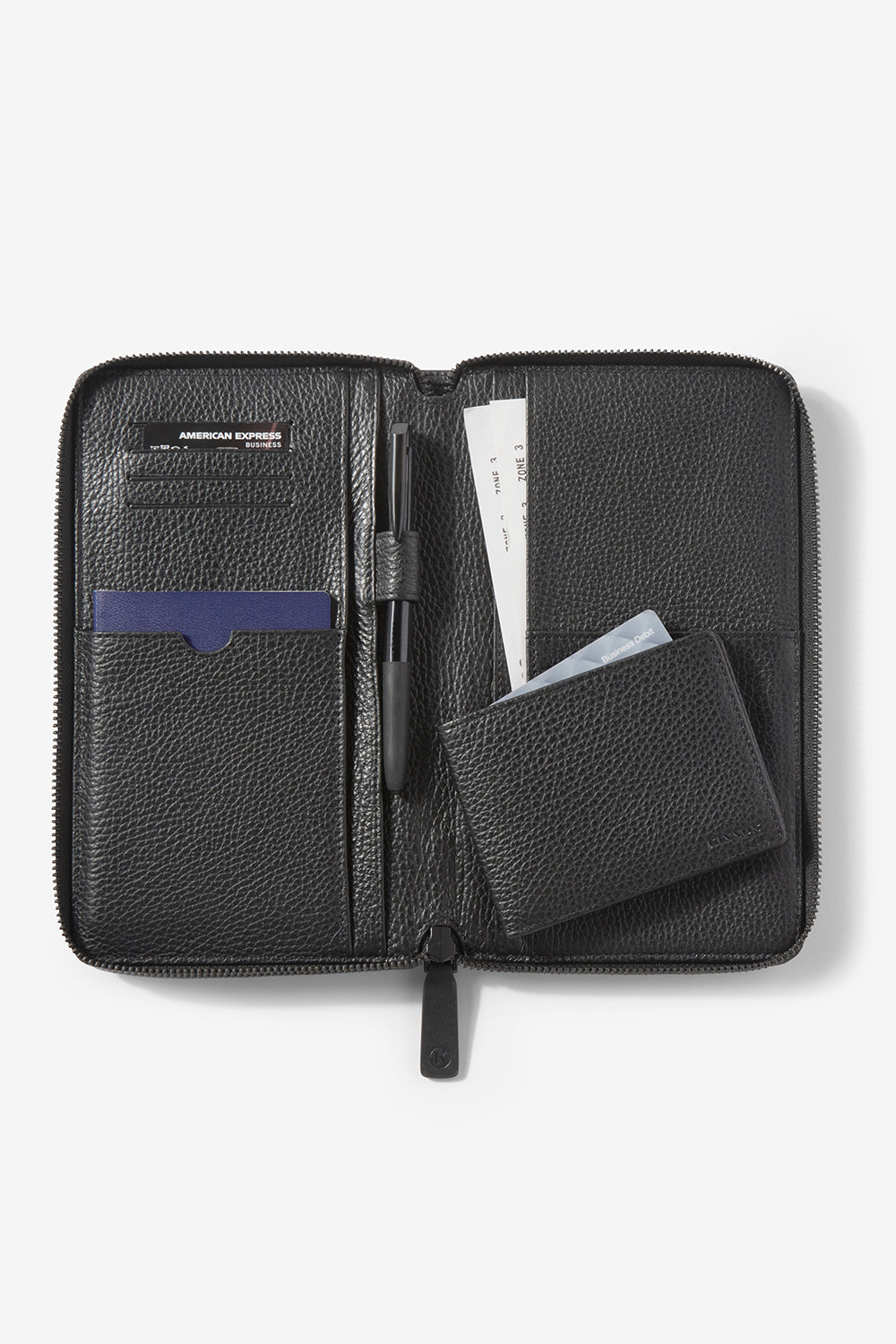 Travelling in style has never been so easy. Featuring plenty of pockets and four card slots, the Hemingway offers a rear slip for your boarding pass, a coin purse to transition on arrival and removable wrist strap for extra security. Made from sustainably sourced Italian pebble leather.
