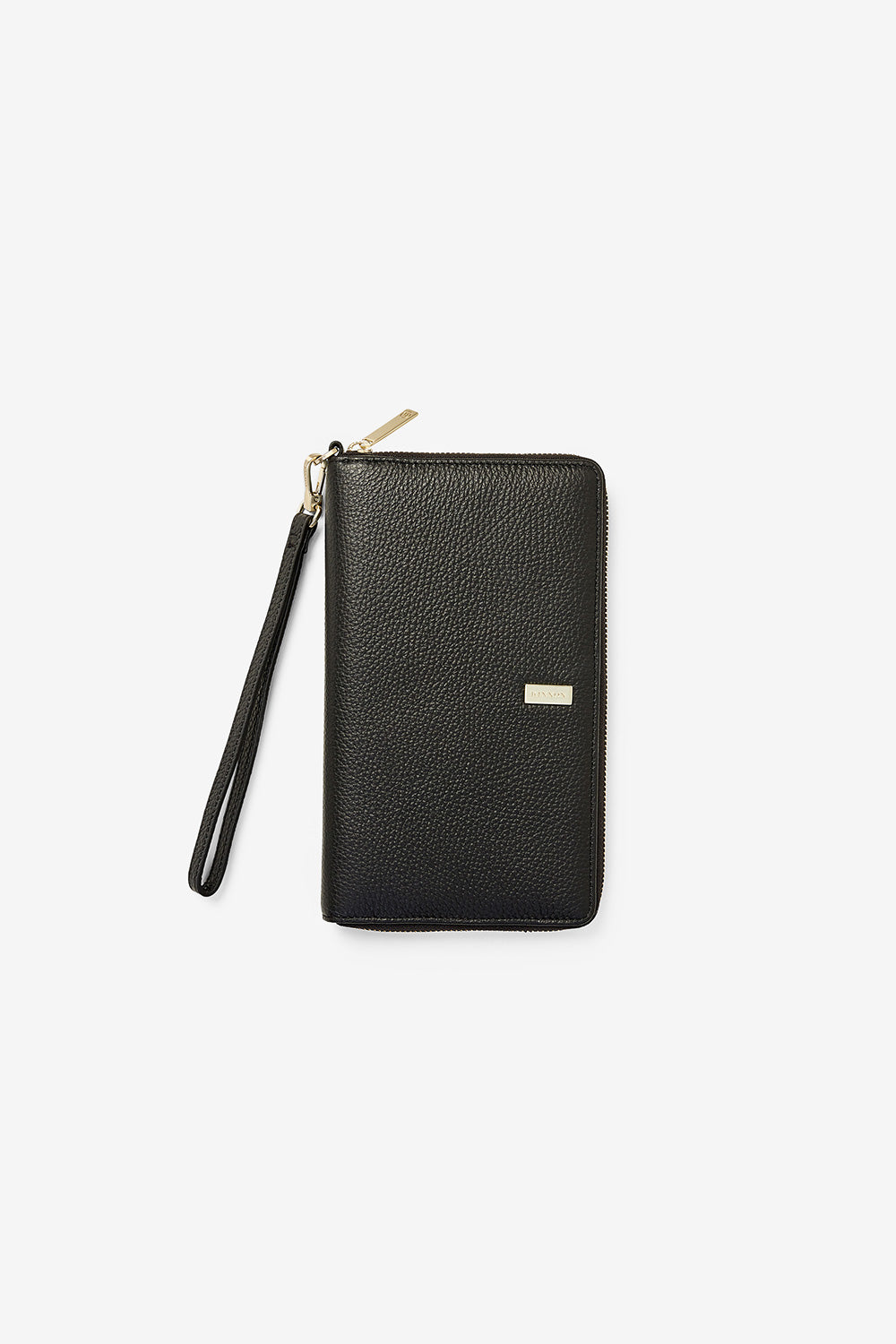 HEMINGWAY TRAVEL WALLET - BLACK WITH LIGHT BRUSHED GOLD HARDWARE