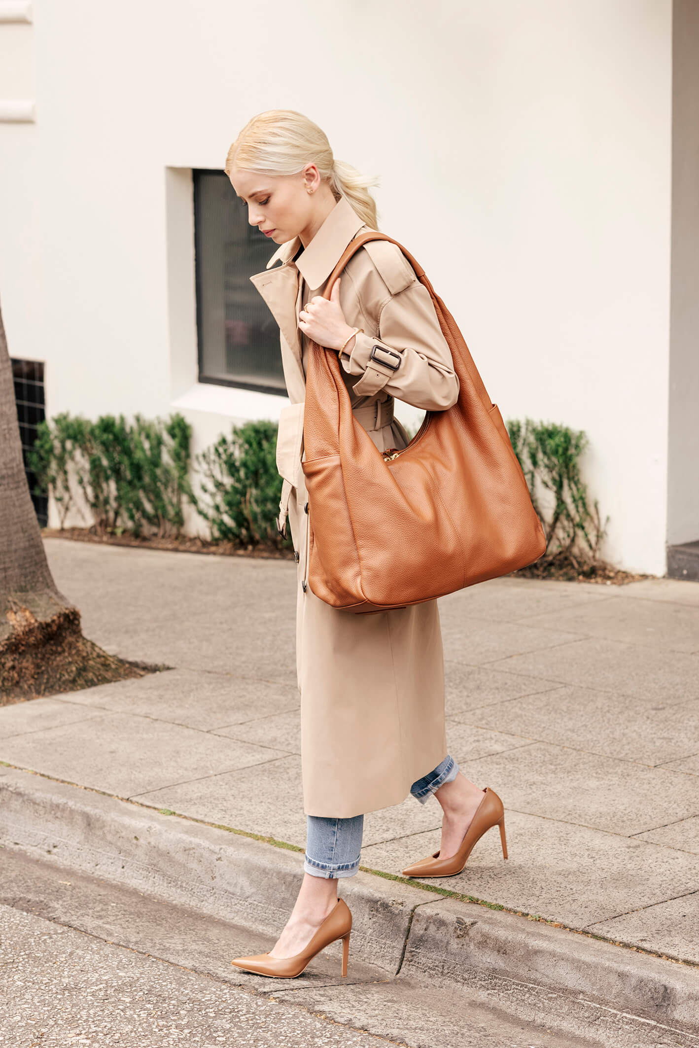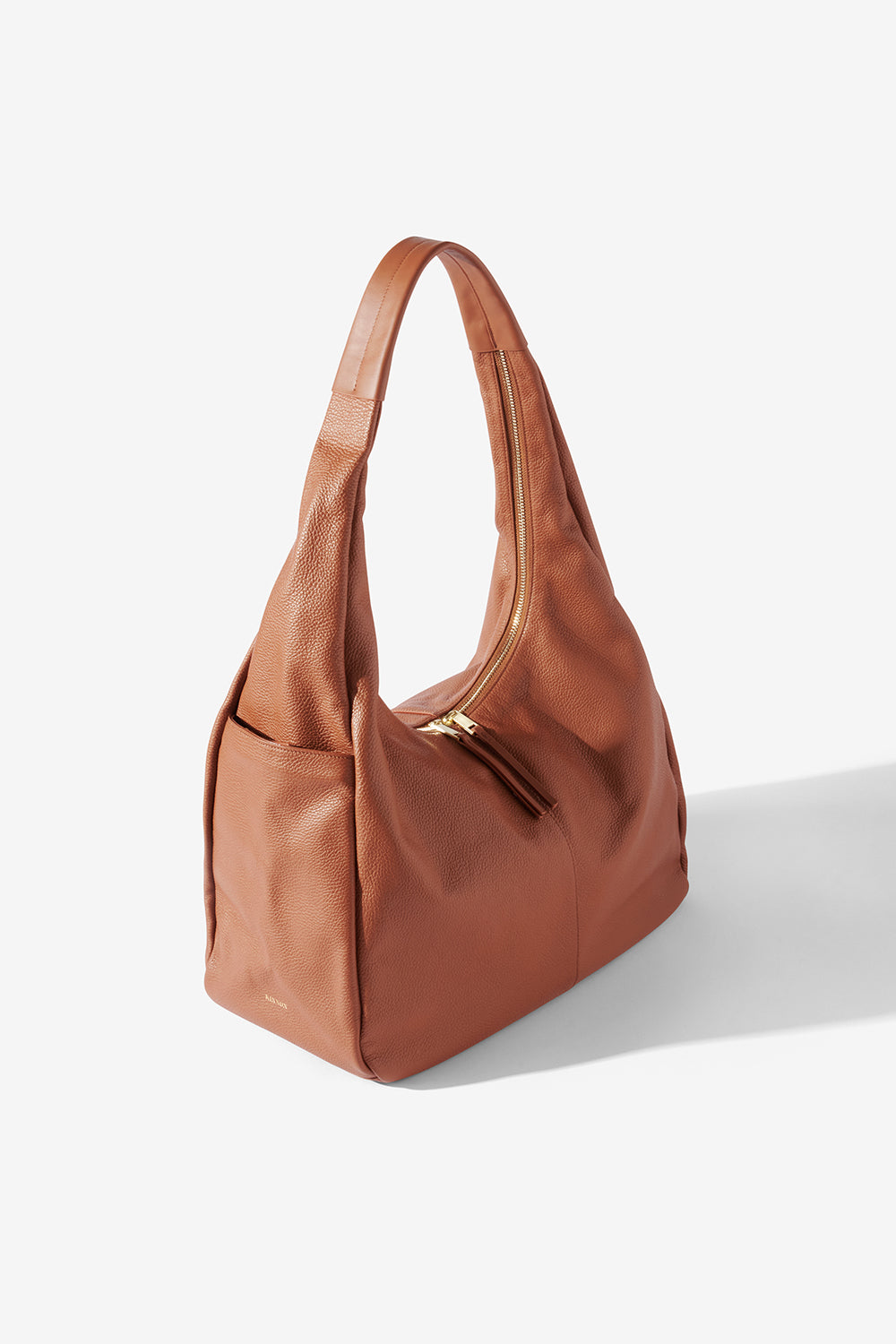 Our iconic Amelia Travel + Weekender bag is the perfect low key luxury overnight bag for short trips, long days exploring new cities or a day in the boardroom. Featuring space for a laptop, notebook, waterbottle, spare shoes and more and consciously crafted from buttery, sustainable Italian leather. Sustainably sourced Italian pebble leather with nappa leather handle contrast