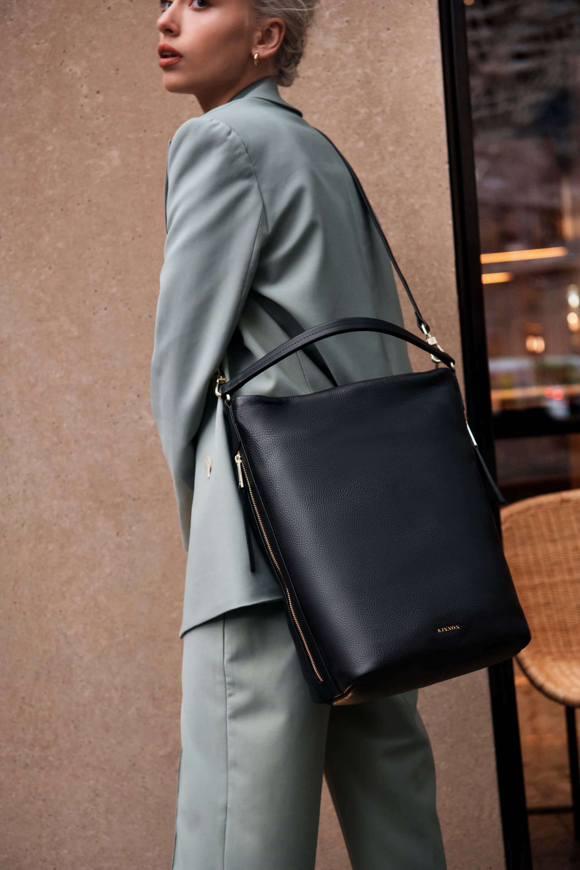- Sustainably sourced Italian pebble leather with nappa leather detailing