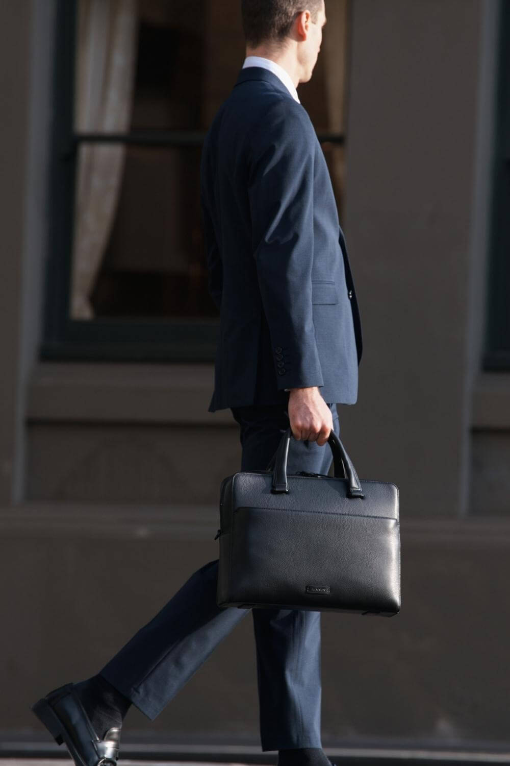 Part briefcase, part carryall and all style, with every detail taken care of. Offering dedicated spaces for a 13" or 15" laptop, a tablet and ample room for other everyday essentials, it features hand carry straps, an adjustable and detachable shoulder strap and a suitcase slide on the back for ease when travelling. Built to last, the Armstrong is made from Italian pebble leather with nappa leather contrast detailing.