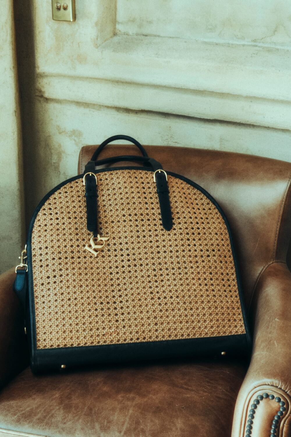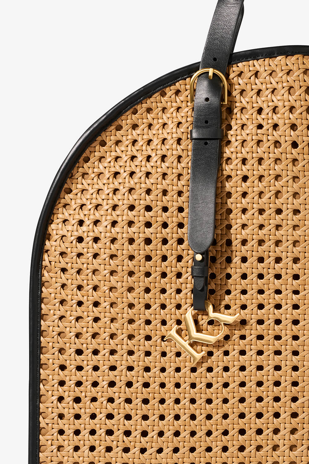 The beautifully crafted, one-of-a-kind garment bag, combines sophistication with practicality. Constructed to ensure a comfortable carry, the double zippered garment bag opens to lie flat to hang dresses, suits and more, with zippered pockets and a central space large enough to hold shoes, toiletries and more for a night or weekend away. Perfectly sized for airline carry on, it can be held by hand or worn over the shoulder thanks to its adjustable brushed gold hardware buckle straps, and also includes an additional adjustable and detachable shoulder strap for hands free crossbody carry.