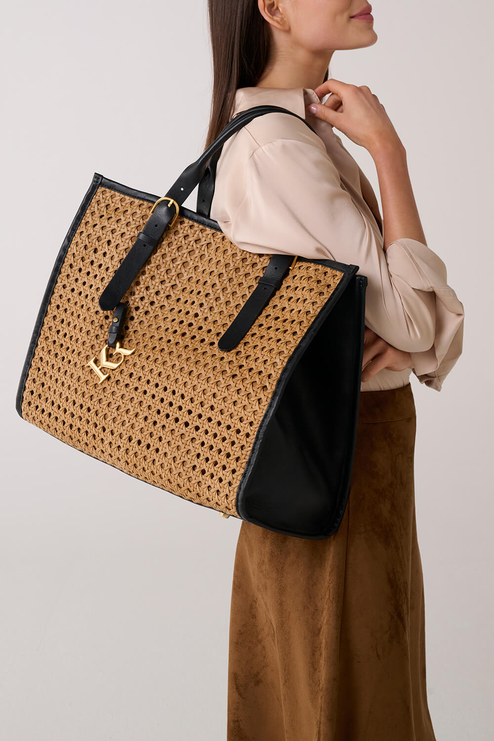 The beautifully crafted and spacious KR Tote features a timeless silhouette that can be styled your way. Lovingly handcrafted with a bespoke hand-woven leather rattan weave, exclusive to Kinnon.